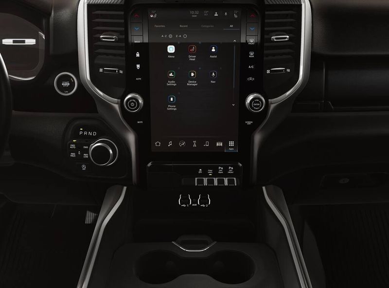 • BIG HORN LEVEL 2 EQUIPMENT GROUP -inc: SiriusXM Radio Service Power Adjustable Pedals Leather Wrapped Steering Wheel 12 Touchscreen Display Glove Box Lamp Auto Power-Folding Mirrors 115V Auxiliary Rear Power Outlet Media Hub w/2 Charge Only USBs Heated Front Seats Security Alarm Black Premium Power Mirrors Premium Overhead Console 9 Amplified Speakers w/Subwoofer Disassociated Touchscreen Display Body Color Fender Flares Remote Tailgate Release 115V Auxiliary Power Outlet LED Dome Lamp w/On/Off Switch Universal Garage Door Opener 2nd Row In Floor Storage Bins Sun Visors w/Illuminated Vanity Mirrors LED Footwell Lighting Rear Window Defroster Rear View Auto Dim Mirror Rear Power Sliding Window GPS Navigation Overhead LED Lamps Wheels: 20 x 9 Aluminum Chrome Clad (WRK) Tires: 275/55R20 OWL All Season Bridgestone Brand Tires Auto Dim Exterior Driver Mirror SiriusXM w/360L Connected Travel & Traffic Services Heated Steering Wheel Configurable Drive Mod
