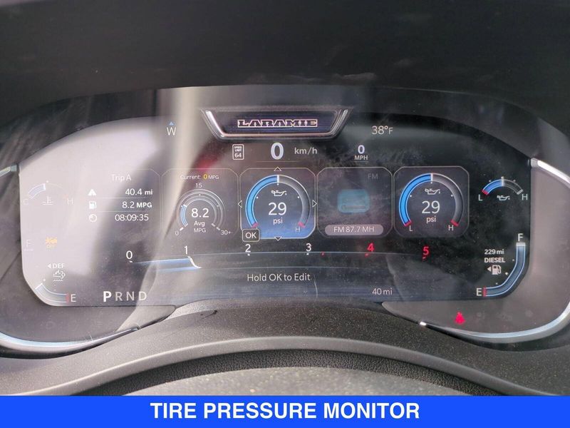 • LARAMIE LEVEL 1 PLUS EQUIPMENT GROUP -inc: CTR Stop Lamp w/Cargo View Camera Rain Sensitive Windshield Wipers Power Adjustable Pedals w/Memory LED Bed Lighting Traffic Sign Recognition Adaptive Steering System Auto Dim Exterior Mirror Anti-Spin Differential Rear Axle Drowsy Driver Detection MOPAR Deployable Bed Step Foam Bottle Insert (Door Trim Panel) Active Lane Management System Power Heated Fold Telescopic Mirrors w/Memory MOPAR Spray In Bedliner Remote Tailgate Release Auto High Beam Headlamp Control Exterior Mirrors w/Memory 2nd Row In Floor Storage Bins Auto Dim Exterior Passenger Mirror Auto Adjust In Reverse Exterior Mirrors