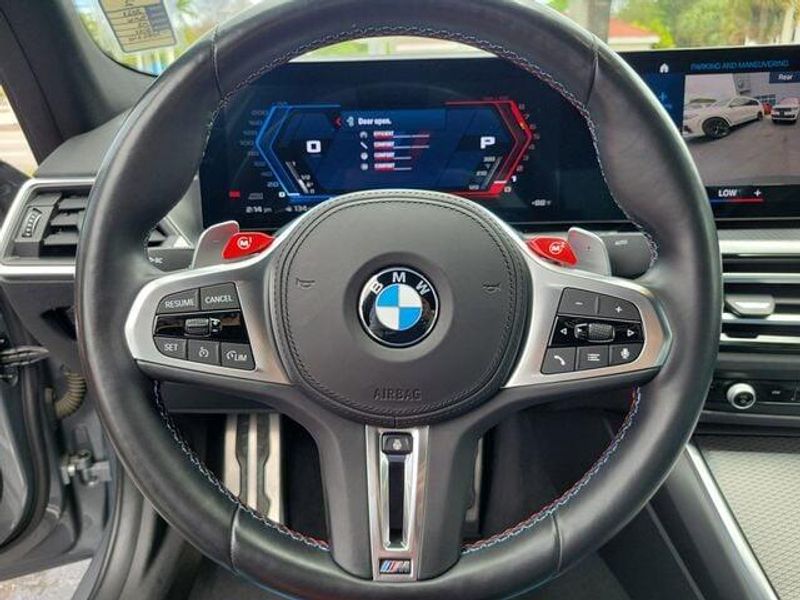 VERY LOW MILES! At just 19925 miles, this 2023 BMW provides great value. KEY FEATURES AND OPTIONS Comes equipped with: Executive Package, Icon Adaptive Led Headlights with Laserlight, M Compound Brakes with Red Calipers, Parking Assistance Package. This BMW M3 also includes Clock, Climate Control, Tachometer, Multi-Zone Climate Control, Cruise Control, Power Steering, Telescoping Steering Wheel, Rear Air Conditioning, Steering Radio Controls, Power Mirrors, Leather Steering Wheel, Driver Airbag, ABS Brakes, Passenger Airbag, Intermittent Wipers, Side Airbags, Rear Defogger, Security System, AM/FM, Surround Sound, Sliding Rear Window, Rear Spoiler, Sport Seats, Center Arm Rest, Vanity Mirrors, Heated Mirrors, Child Proof Door Locks, Daytime Running Lights, Parking Sensors, Rear Heated Seats , Reverse Camera, Side Curtain Airbags, Roll Stability Control, Adaptive headlights, Tire Pressure Monitor, Premium Sound, Carpeted Floor Mats, Aux. Audio Input, Front Heated Seats, Voice Control. Climate Control, Dual Zone Climate Control, Cruise Control, Power Steering, Power Mirrors, Leather Steering Wheel, Rear Air Conditioning, Clock, Tachometer, Telescoping Steering Wheel, Steering Wheel Radio Controls, Driver Airbag, Passenger Airbag, Side Airbags, Security System, ABS Brakes, Rear Defogger, Intermittent Wipers, AM/FM, Premium Sound System, Leather Interior Surface, Adaptive headlights, Aux. Audio Input, Carpeted Floor Mats, Center Arm Rest, Child Proof Door Locks, Daytime Running Lights, Front Heated Seats, Heated Mirrors, Parking Sensors, Premium Sound, Rear Heated Seats , Rear Spoiler, Rear Spoiler, Reverse Camera, Roll Stability Control, Side Curtain Airbags, Sliding Rear Window, Sport Seats, Tire Pressure Monitor, Vanity Mirrors - Contact Sales Department at 305-342-8500 or crios345@yahoo.com for more information. -